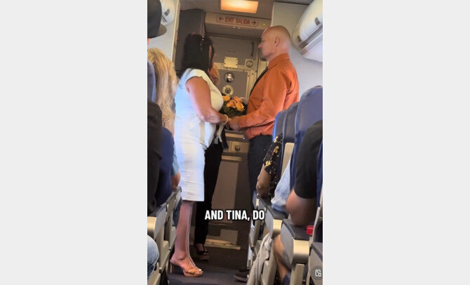 기내에서 ‘깜짝 결혼식’…항공사 이벤트에 승객이 하객 됐다