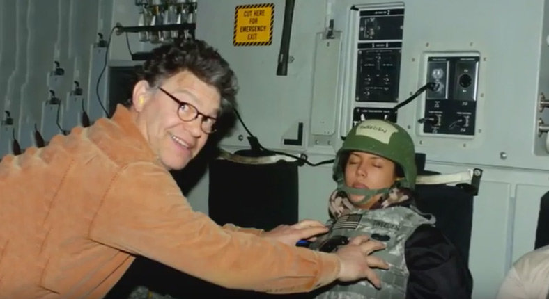의원이 되기 전 코미디언으로 활동하던 프랭큰은 2006년 12월 미군위문협회 순회공연 차 중동을 방문했다가 동료 방송인 리앤 트위든(Leeann Tweeden)을 성추행한 혐의를 받고 있습니다. 당시 프랭큰은 의자에 앉아 잠든 트위든의 가슴을 잡은 채 웃으며 사진을 찍었습니다. 이 사실은 최근 피해자 트위든이 “잠든 사이 앨 프랭큰으로부터 원치 않는 신체접촉을 당했다. 그는 내게 강제로 입을 맞추기도 했다”고 폭로하면서 수면 위로 올라왔습니다.