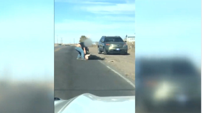 미국 뉴멕시코주 앨버커키의 도로 한복판에서 격렬한 몸싸움을 벌이는 두 남자의 영상이 온라인에서 화제가 됐습니다.