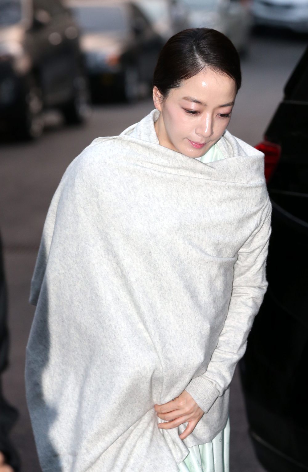 연한 옥색 한복 위에 밝은 청록색 코트를 입고 베이지색 머플러를 착용한 노현정 전 아나운서는 단정한 모습이었다.