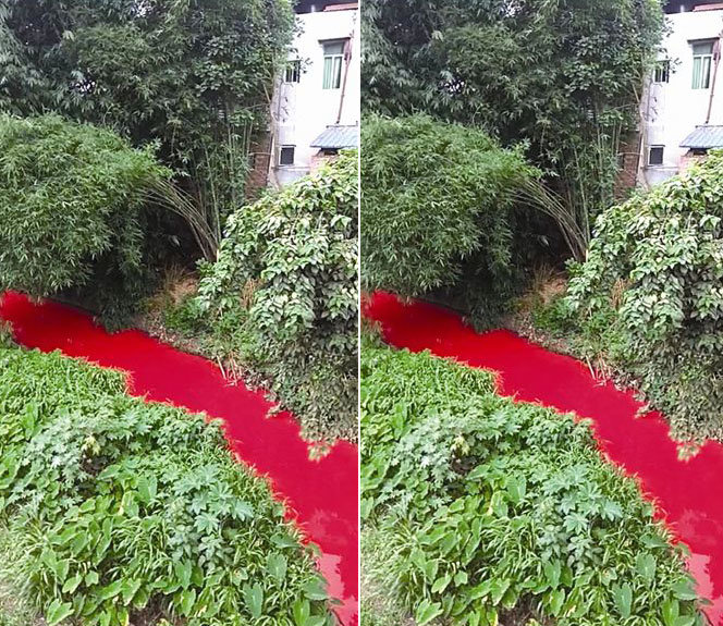 한 마을의 강물이 핏물처럼 시뻘겋게 변해 주민들을 공포에 떨게 만들었다.