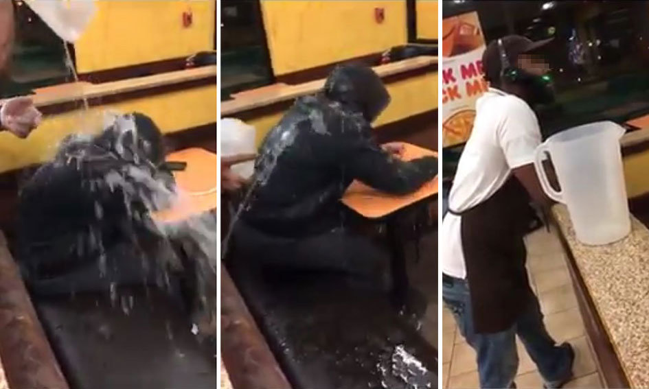 영상에는 테이블에 엎드려 있는 한 남성과 그에게 물을 뿌리고 재미있다는 듯 웃는 매장 직원의 모습이 담겼다. 물벼락을 맞은 남성은 제레미 영 뒤프렌(Jeremy Youngs Dufresne·25)이라는 이름의 노숙자다.
