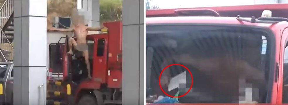 중국 한 고속도로 휴게소에서 화물차 운전자가 나체로 난동을 부리는 모습이 포착돼 충격을 주고 있다고 샤오샹천바오 등 외신이 보도했다.