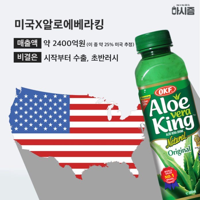 한때는 한국음료인지 모르고 알로에 베라킹을 해외직구 하는 사람들도 있었으나, 이제는 편의점이나 마트에서도 볼 수 있다. 하지만 여전히 낯설고 뿌듯한 녀석이다.