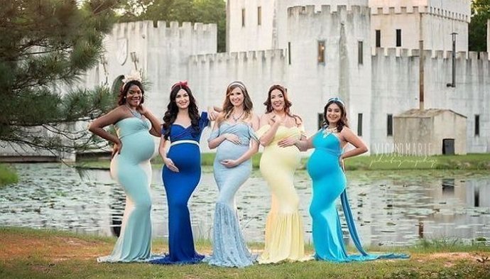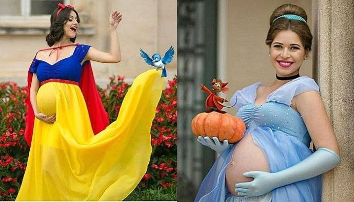 만삭의 산모들이 디즈니 만화에 나오는 백설공주, 신데렐라, 자스민, 벨 등의 캐릭터로 변신해 사진을 찍었다. 이들은 활짝 웃으며 그동안 늘씬한 공주의 이미지를 확 바꿔놨다.