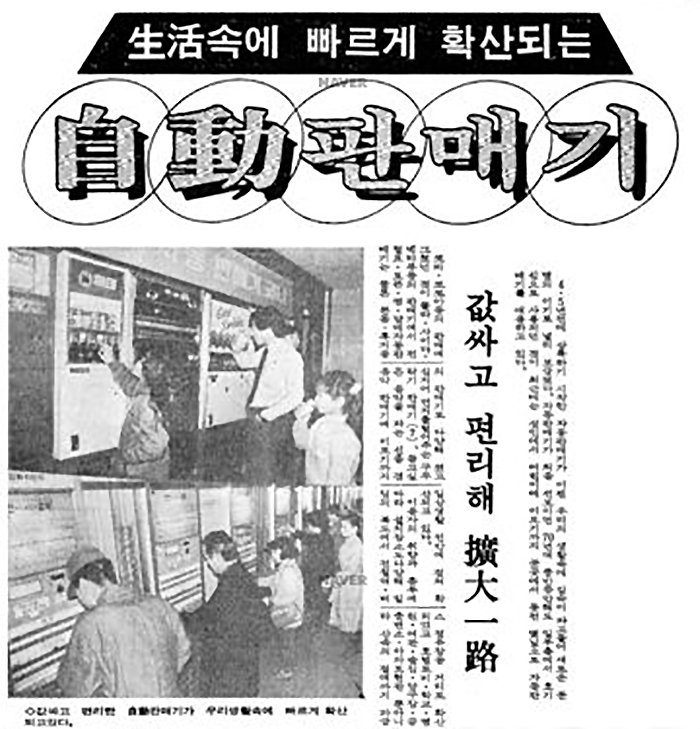 한국에서는 1977년 롯데가 일본 샤프사에서 사 온 20대의 자판기가 최초로 알려졌다. 당시 신문에는 ‘유통구조를 바꿀 혁신적인 기계’에서 ‘동전 인식을 과연 할 수 있을까’라는 우려가 공존했다. 맞는 말이기도 한 게 어릴 때 동전에 실을 끼우거나, 장난감 동전을 넣어도 봤으니까.