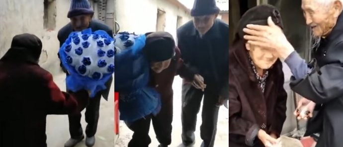 보도에 따르면 산둥성 남부에 있는 린이에 사는 할아버지는 이날 아내에게 커다란 꽃다발을 건넸다.