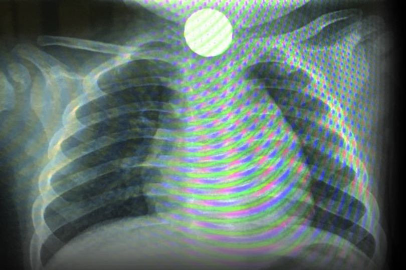스카일라의 상태를 본 헐 로얄 병원 의사들은 알러지 반응 때문에 기도가 좁아졌을 가능성을 제일 먼저 내놓았습니다. 그러나 X레이 사진을 찍어 보니 선명한 원형 물체가 아기의 가슴 속에 자리잡고 있는 게 보였습니다.