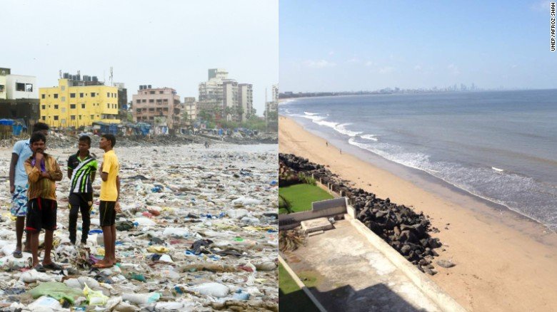 아름답고 깨끗한 뭄바이 베르소바(Versova) 해안선은 지난해까지만 해도 인도에서 가장 불결한 쓰레기 해변이었습니다.