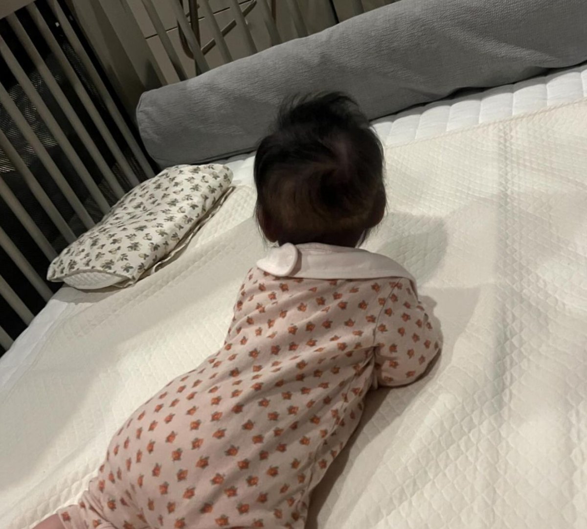 함께 공개한 사진 속 이민정의 딸은 침대에서 엎드린 채 어딘가를 바라본다. 통통하고 귀여운 뒤태가 보는 이들을 미소 짓게 한다.