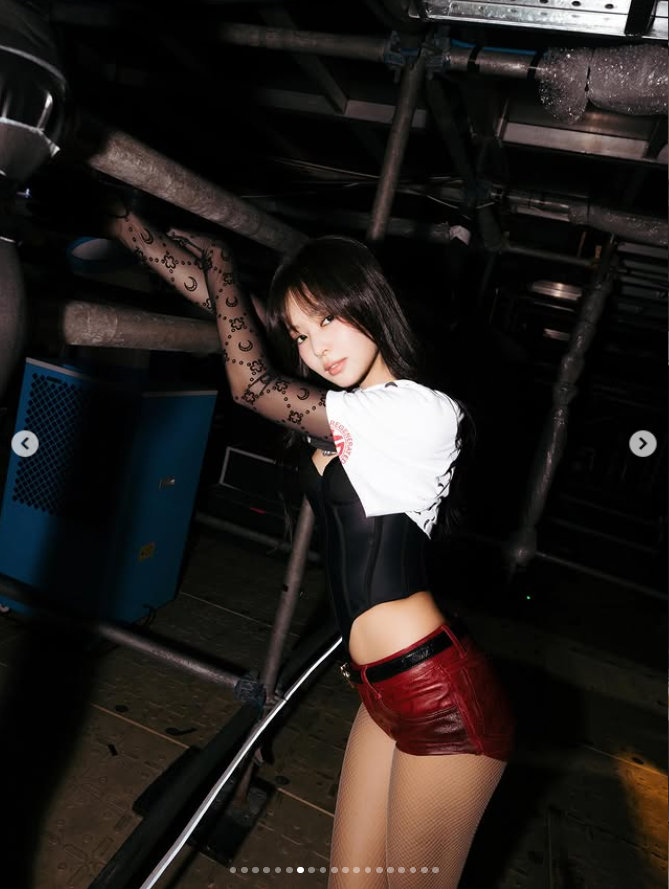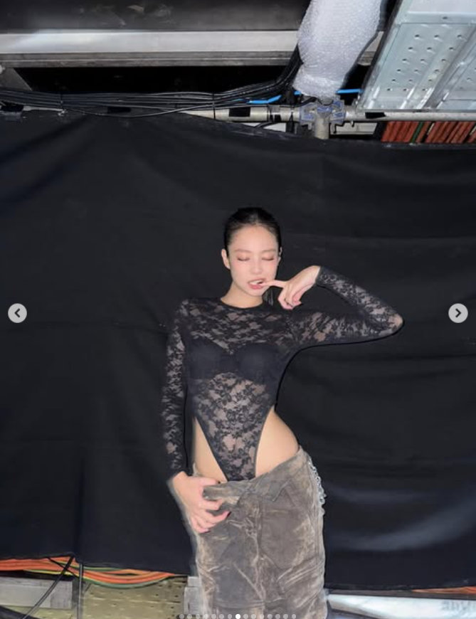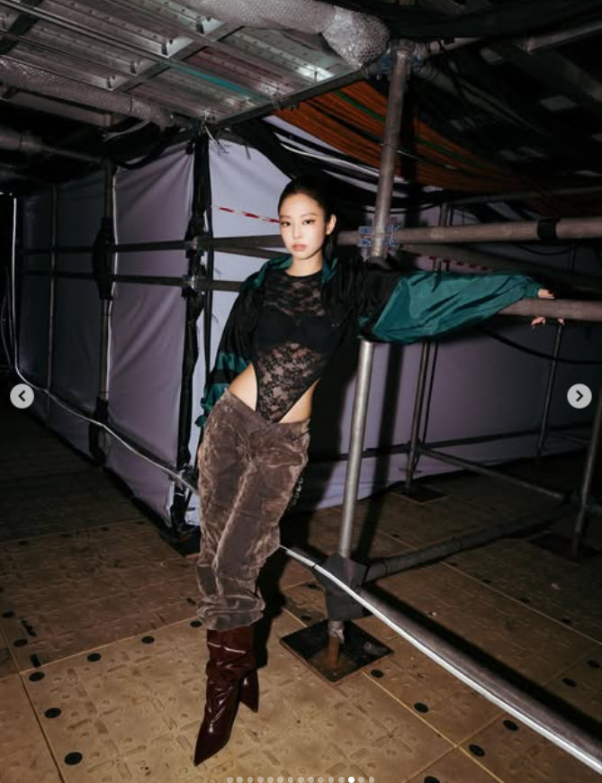 공개된 사진 속 제니는 무대 뒤에서 파격적인 포즈로 시선을 끈다. 몸매가 강조된 의상을 입은 채 매혹적인 분위기를 뿜어내는 제니는 뇌쇄적인 눈빛까지 발사한다. 시크하면서도 섹시한 무드가 제니만의 아이덴티티를 완성한다.