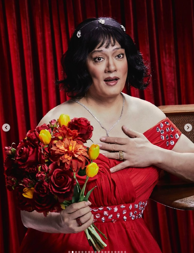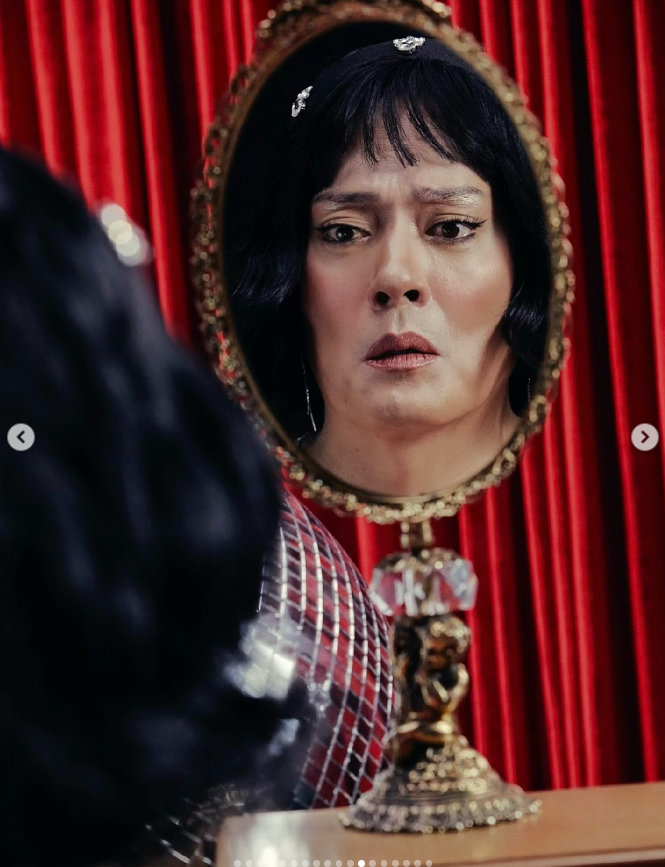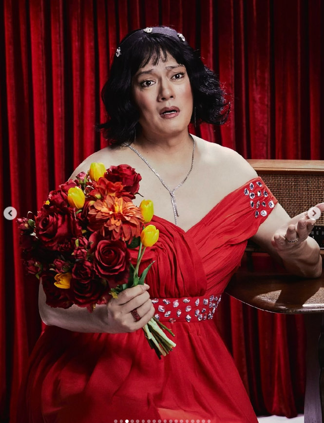 공개된 사진에는 여장을 한 김형묵 모습이 담긴다. 강렬한 레드 의상과 범상치 않은 메이크업으로 시선을 끄는 김형묵. 평소 여러 작품에서 빌런(악인)을 도맡던 모습과 사뭇 다른 느낌이다. 아니 정확히는 파격에 가깝다. 교태를 부리는 듯한 포즈는 보는 이들을 당혹스럽게 한다. 또 특유의 남성성을 자랑하는 넓은 어깨는 웃음을 자아낸다.