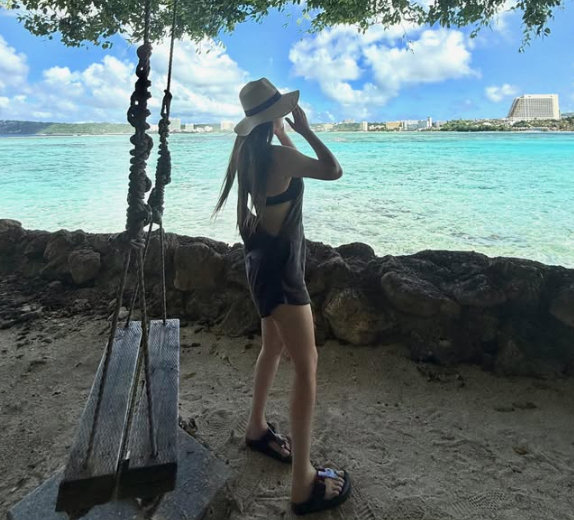 특히 해변 그네 앞에서 바다를 바라보는 뒷모습 컷에서는 한 폭의 작품 같은 장면이 연출됐다. 괌의 맑은 하늘과 투명한 바다, 민영의 자연스러운 실루엣이 어우러지며 휴식의 순간을 더욱 특별하게 만들었다.