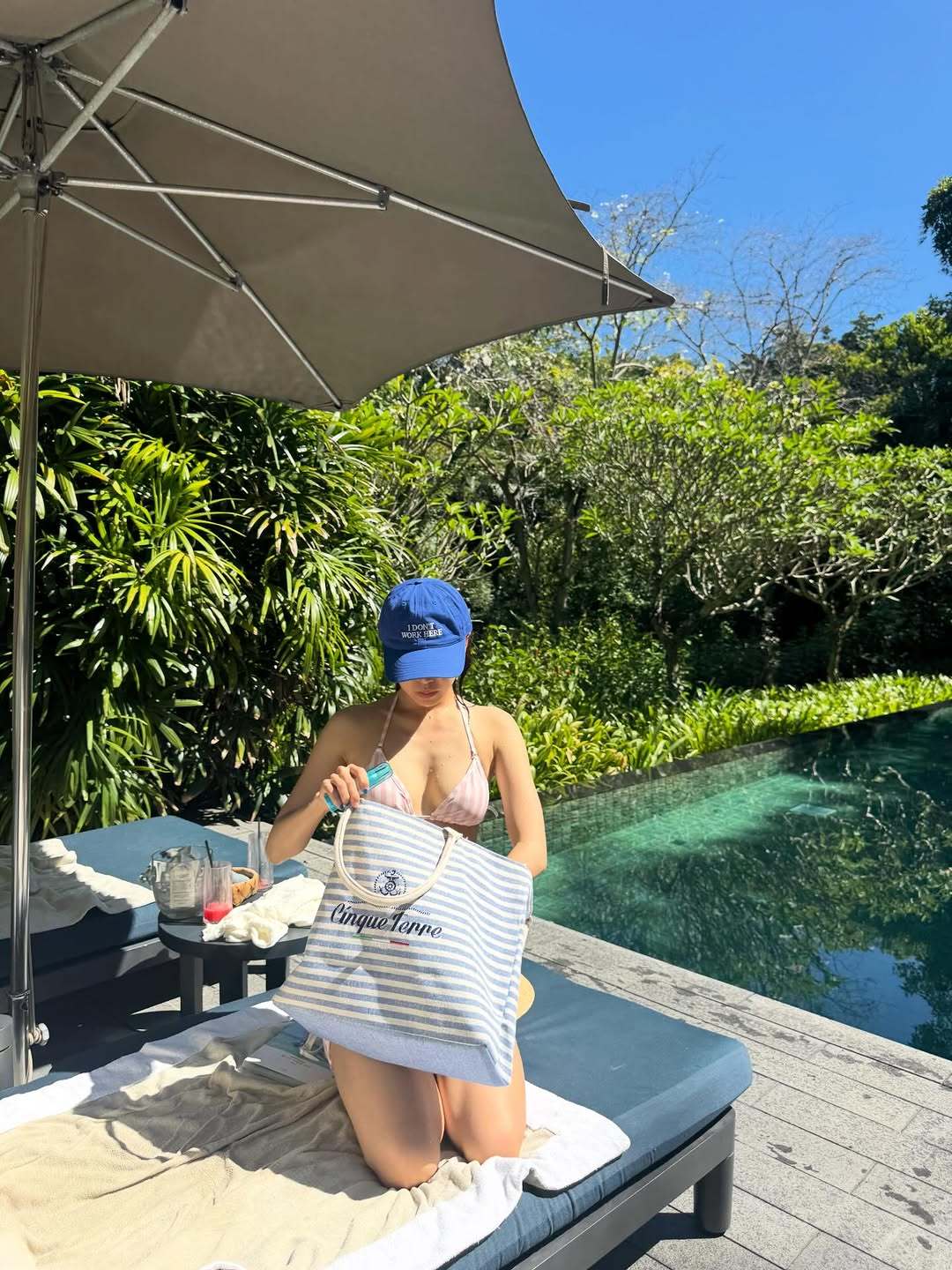 또 다른 사진에서는 스트라이프 비치백을 들고 장난기 넘치는 포즈를 취하며 밝은 에너지를 발산했다. 편안하면서도 스타일리시한 휴양지 패션이 팬들의 시선을 사로잡는다.