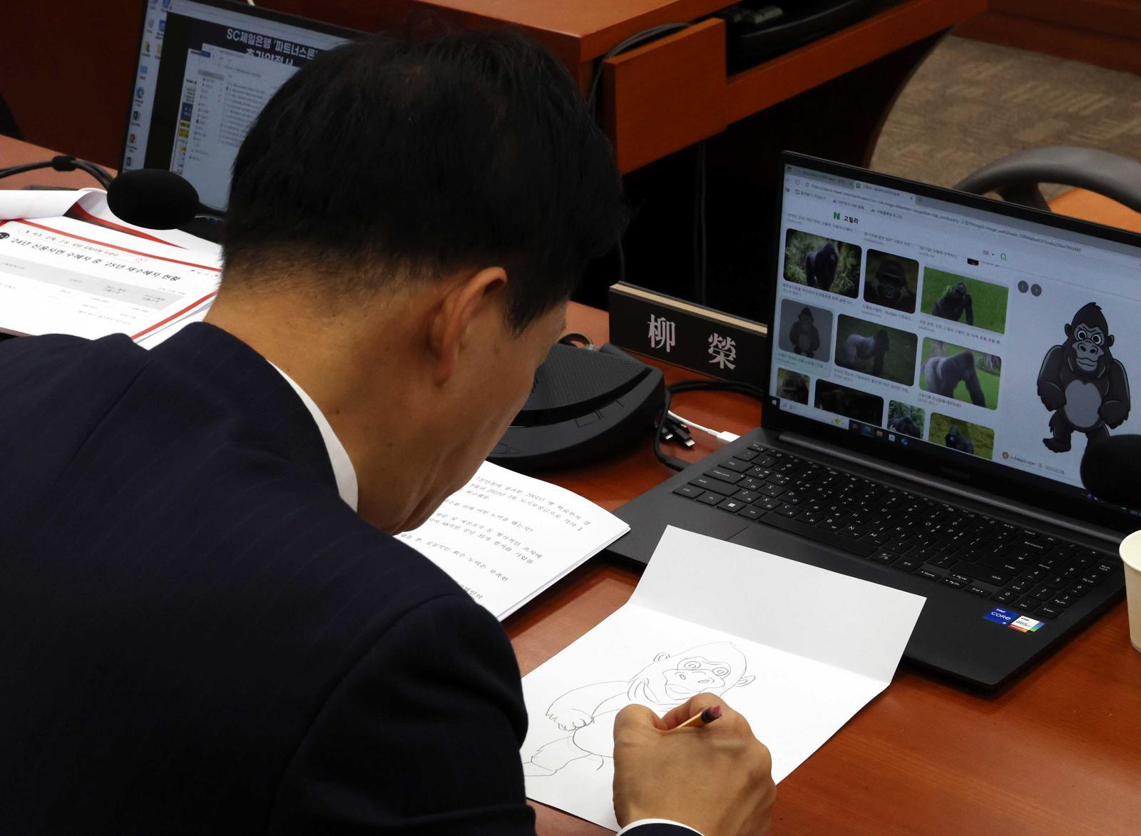 27일 독립언론 ‘미디어몽구’가 공개한 영상에 따르면, 국민의힘 유영하 의원은 국감 도중 노트북 화면에 띄운 고릴라 이미지를 따라 그리는 모습이 포착됐다. 당시 회의는 금융위원회와 금융감독원을 상대로 부동산 정책을 점검하던 자리였다.