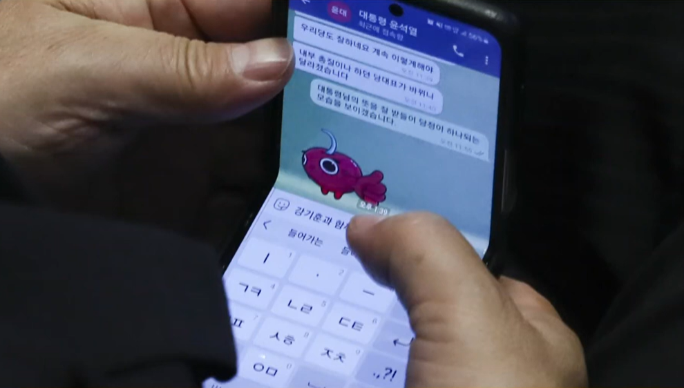 권성동 당시 국민의힘 원내대표가 윤석열 전 대통령과 텔레그램을 활용해 대화하고 있다. (출처=MBN)