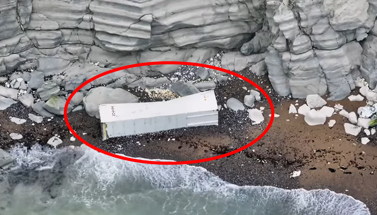 해변으로 떠밀려 온 컨테이너의 잔해. 유튜브 @Mark1333