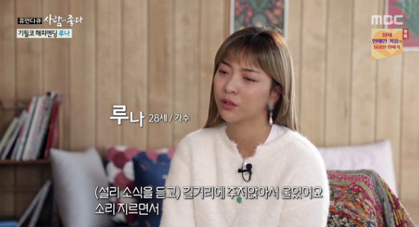 가수 루나가 설리에 이어 이지은을 잃은 사연을 고백했다.