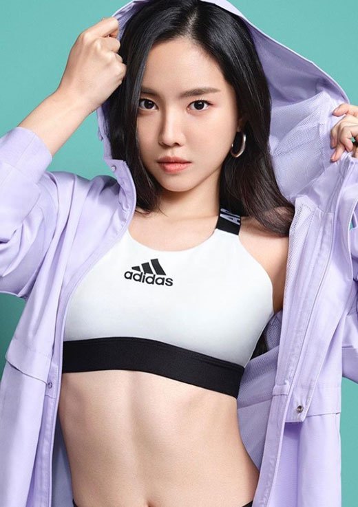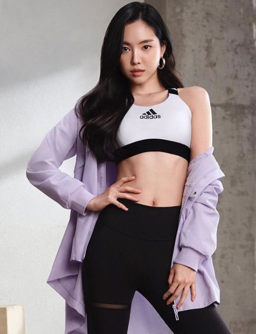 공개된 사진 속 손나은은 잘록한 허리와 살짝 보이는 복근 등이 돋보이는 톱을 입고 완벽한 트레이닝복 핏을 뽐내고 있다.