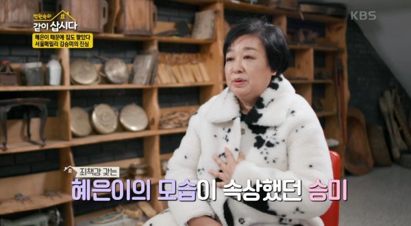 혜은이는 지난 12일 KBS2 \'박원숙의 같이 삽시다3\'에 서울패밀리로 활동한 가수 김승미를 초대했다. 김승미는 혜은이의 사촌 동생으로, 막내 작은 아버지의 딸이기도 하다.