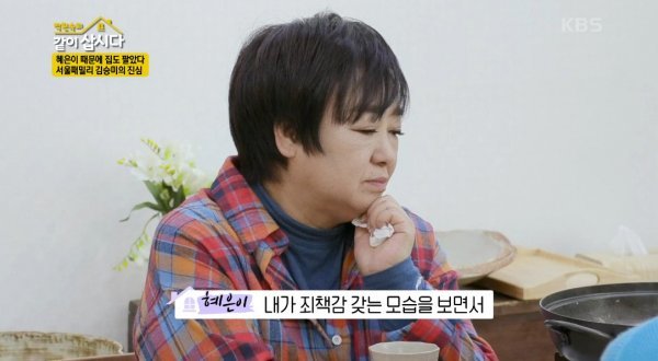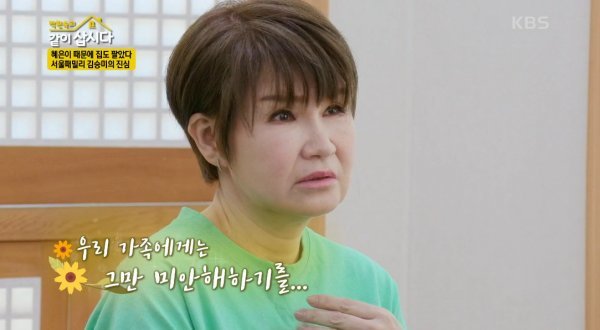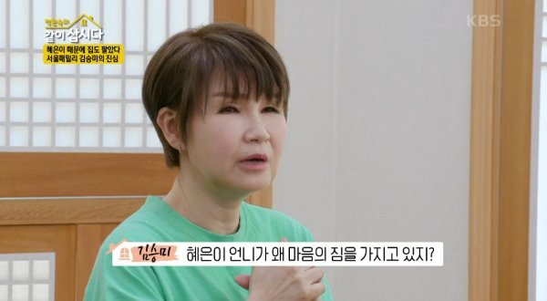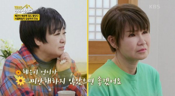 이에 김승미는 "우리는 가족 아니냐. 아버지도 그랬다, 가족의 일이니 감수해야 할 일이라고"라며 "그 당시 우리 자식들이 누구 하나 집까지 판 것에 대해 토를 달지 않았다. 혜은이가 그간 고생스러운 삶을 살지 않았나, 마음의 짐을 갖고 있지 않았으면 좋겠다"고 오히려 혜은이를 걱정했다.
