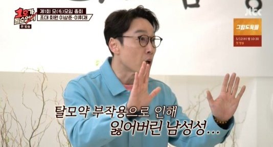 이휘재는 "처음에 상담을 받았을 때 탈모약 처방을 받았는데 부작용으로 남성호르몬이 저하된다고 하더라"며 "실제 아내가 여자로 안 보이더라. \'이건 아니다\' 싶어서 약을 끊고 모발 이식을 했다"고 털어놨다.