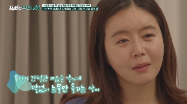 이날 이미 두 번의 시험관 시술을 했으나 안타깝게 실패했던 박동빈·이상이 부부가 간절한 마음으로 세 번째 도전을 하는 과정을 담는다. 배우 박동빈이 아내를 위해 능숙하게 장을 본 후 요리하고, 같이 난임센터를 다니면서 병원 일지를 쓰는 모습과 배우 이상이가 시험관 시술 과정에서 호르몬 변화에 따라 힘들어지는 일들을 솔직하게 고백하는 모습 등을 가감없이 보여줄 예정이다. 이들 띠동갑 부부가 2세를 기다리는 간절함에 눈시울이 붉어지기도.