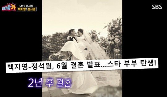 백지영과 정석원은 2년여 열애 끝에 2013년 6월 결혼했다. 두 사람의 결혼식에서 축가를 부른 성시경은 “기사를 통해 내가 축가를 부르게 됐다는 걸 알게 됐다. 아무리 친해도 이건 좀 아니지 않나?”라고 물었다. 백지영은 “얘기한 줄 알았다”면서 “두 달 만에 결혼 준비를 해야 했는데 남편은 작품을 촬영 중이었다. 매니저에게 연락을 해놓고 성시경에게 전화한다는 걸 깜빡했다”고 해명해 웃음을 자아냈다.