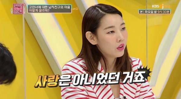 곽정은은 "여자로서 매력 없다는 말을 들으면 충격이 클 거다. 하지만 고민녀의 매력이 없는 게 아니라 남친에게 그 신호가 잡히지 않았던 것뿐이다. 본인이 별로인 사람이라고 단정하지는 않았으면 좋겠다"라고 위로했다.
