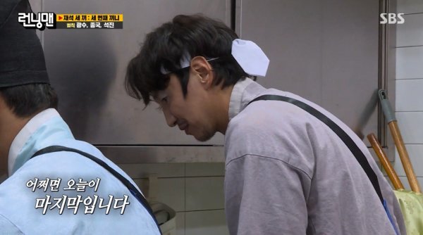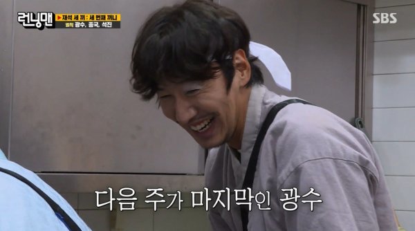 6일 방송된 SBS ‘런닝맨’ 말미에는 김종국 지석진 그리고 이광수가 벌칙을 수행하는 모습이 그려졌다. 이날 지석진은 이광수를 지그시 바라보며 “오늘 마지막 벌칙 아니냐. 마지막회까지 벌칙을 하진 않을 것 같다”며 “오늘 벌칙은 왠지 모르게 좋다”고 말했다. 김종국은 “어색하게 그런 멘트 하지 마라”면서도 씁쓸한 미소를 지었다.