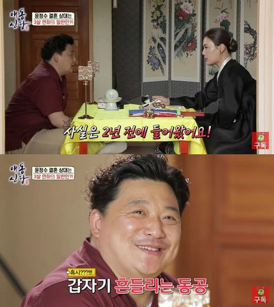 이어 윤정수는 강신정을 찾아 올해 결혼운에 대해 물어보며 “나이가 있다보니 결혼에 대한 고민이 있다. 4년 전에 김숙이 너무 셌다”고 말해 웃음을 안겼다. 두 사람은 한 예능프로그램에서 가상 부부로 활약한 바 있다.