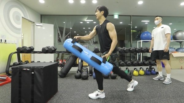 이어 허훈은 움직이는 물의 무게를 지탱해야 하는 아쿠아 백을 들고 런지 운동을 시작한다. “나 자신한테 젖어야 돼”라며 운동에 몰입한 허훈은 자신의 모습에 흠뻑 취한 모습으로 웃음을 유발한다.