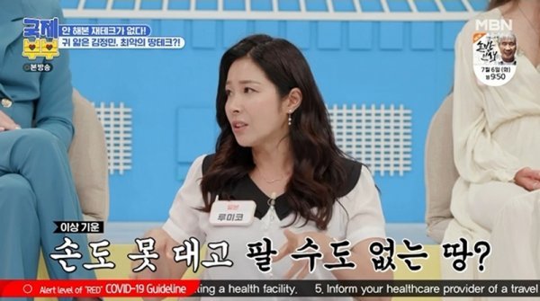 이어진 VCR에서 루미코는 "남편을 고발하겠다. 요즘 재테크 열풍 아닌가. 남편도 재테크에 빠져 있는데 그중에서도 보험으로 재테크를 한다. 심각하다. 남편은 한 달 보험료가 300~400만 원 선이다"고 털어놔 충격을 안겼다.