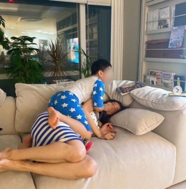 장영란은 1일 인스타그램 계정에 “TV 볼 때 말 한 마디 못하게 하는 아들. 사람 살려. 그걸 찍는 남편. 우리집 남자들 그래도 사랑해. 개구쟁이 부자그램”이라는 글과 사진을 올렸다.