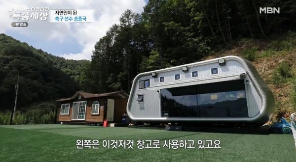 송종국의 보금자리는 해발 700m 산기슭에 위치했다. 창고와 거주 공간 총 2곳으로 분리됐다. 송종국은 산속 집에서 반려견들과 함께 홀로 생활 중이다.