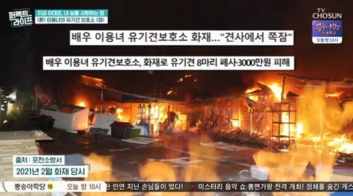 이용녀는 4일 오후 방송된 종합편성채널 TV조선 ‘퍼펙트라이프’에서 지난 2월 유기견 보호소에서 발생한 화재 사고를 언급했다. 화재로 유기견을 잃은 이용녀는 “내가 아직 안정이 안 됐다. 좀 더 마음이 정리 되면 그 아이들에게 미안하다고 할텐데 지금은 감당이 안 된다”고 고백했다.