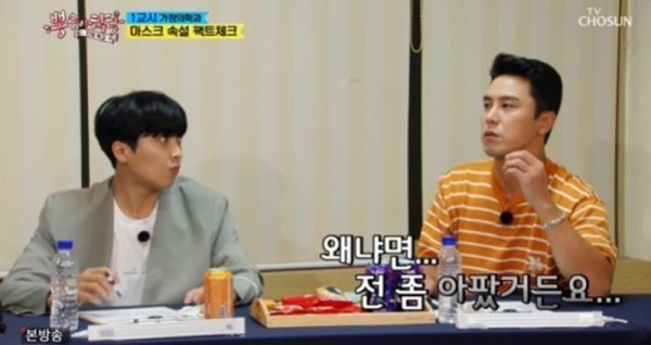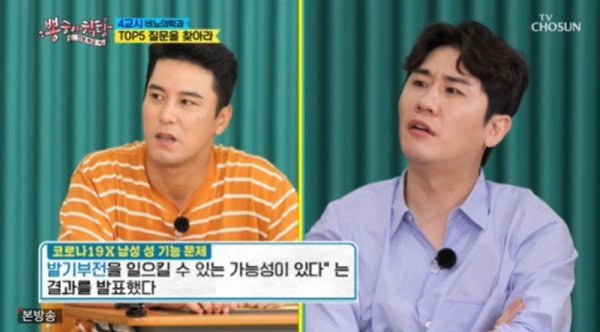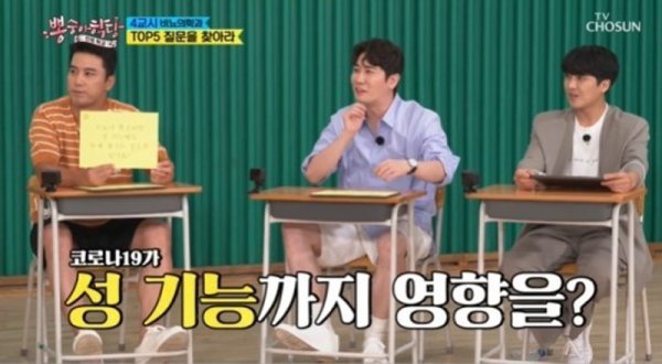 장민호는 “코로나19 확진 되면 성기능에도 문제가 생기는 경우가 있나”라고 질문했다. 전문의가 “문제 생길 가능성이 있다”라는 답변을 하자, 코로나19 확진 및 완치 경험이 있는 장민호, 영탁, 이찬원, 김희재는 울상을 지으며 책상에 얼굴을 파묻었다. 전문의가 “아직 상관 관계는 연구 중인데, 코로나19 감염으로 여러 가지 합병증이 온 분들 중 일부를 조직검사를 해 본 결과 음경 조직에서 코로나바이러스가 침투된 경우를 발견했다. 발기부전에 일으킬 수 있는 가능성이 있다는 연구가 나왔다”고 설명하자, 이찬원과 영탁은 안심한 표정을 지었다.