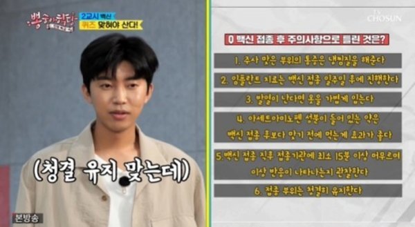 국제 백신 연구소 책임 연구원은 백신 접종 완료자의 해외 여행 가능성, 백신 접종 후 항체가 생기기까지 걸리는 시간, 백신을 맞은 직후 먹으면 안 되는 음식 등에 대한 정보를 전달했다. ‘백신 접종 후 건강한 사람이 아프다’라는 속설에 대해 연구원은 “아주 틀린 얘기는 아니다”라고 답했다. 이에 김희재는 “코로나19에 걸렸던 사람이 백신을 맞으면 효과가 더 증폭되나”라고 질문했고, 연구원은 몸이 학습한 경험이 있기 때문에 백신을 맞으면 면역 반응이 더 잘 유도된된다고 설명했다.