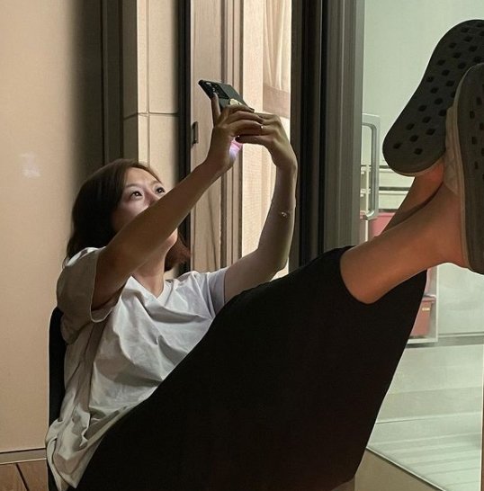 사진 속 장윤정은 셀카 찍기에 집중한 모습이다. 턱선에 맞춰 짧아진 머리 모양이 눈길을 끈다.