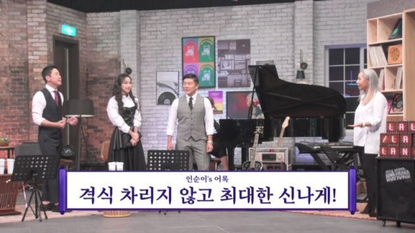 본격적인 수업 전 멤버들이 ‘거위의 꿈’을 불러본 결과 조세호의 샤우팅 고음이 충격을 부르며, 목표 점수인 70점에 한참 못 미치는 44점을 기록했다. ‘멘붕’에 빠진 인순이는 마음을 가다듬고 보컬 수업에 나선 뒤, “시를 읊는다는 생각으로 불러라”는 조언을 해줬다. 이어 치즈처럼 늘어나는 창법과 수정 구슬처럼 동그랗게 부르는 창법, 로켓처럼 고음을 쏘는 방법 등을 알려줬다. 나아가 멤버별 파트를 적재적소로 교체하는 ‘지략’으로 ‘족보 플레이어’의 점수 높이기에 집중했다.