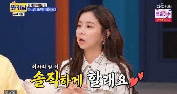 이날 이상준은 자신의 어머니와 갑작스레 전화 통화를 시도했다. 이에 자연스럽게 은가은은 이상준의 어머니와 전화 통화를 하게 됐다. 이상준의 어머니는 "목소리만 들어도 너무너무 행복하다. 아이고 좋아라"면서 진심으로 행복해했다. 이상준은 눈치없이 은가은의 성형 사실을 말했고, 이를 들은 이상준의 어머니는 "성형이 필수다. 나도 쌍꺼풀 수술을 했다"면서 은가은 편을 들어 웃음을 자아냈다.