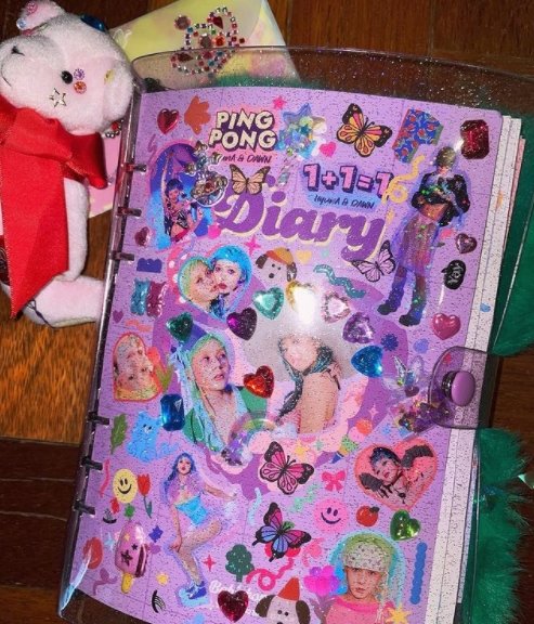 사진에는 신곡 활동을 함께 한 남자친구 던과 스태프들이 손수 작성한 손편지로 이루어진 다이어리 모습이 담겼다. 현아와 던 사진으로 꾸며진 분홍색 커버가 눈길을 끈다.