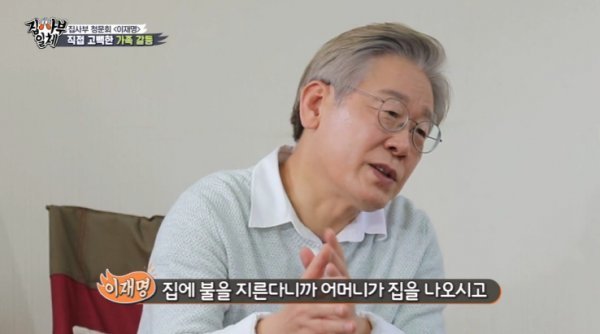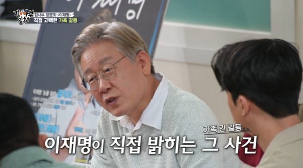 이어 이승기가 “가족관계는 트러블이 있으신 걸로 안다”고 질문하자 이 지사는 “맞다. 욕했냐? 욕했다”고 인정하며 “가족 간 욕설 사건인데 형님은 내가 간첩이라고 믿었다. 내가 북한 공작금 만 달러를 받았다는 이야기가 도는데 형님이 하신 이야기”라고 해명했다. 그는 “(형님이) 시정에 관여하려 했고 내가 그걸 차단했다. 어머니를 통해 해결하려고 했는데 어머니를 협박하더라. 집에 불을 지른다고 하니까 어머니가 무서워서 집을 나오셨다. 그러다 다툼이 벌어졌다”며 “시장을 그만둘 생각을 했다. 언젠가는 화해해야 한다고 생각한다. 그 이슈는 지우고 싶지만 삶의 일부니까 비난을 감수하려 한다”고 고백했다.