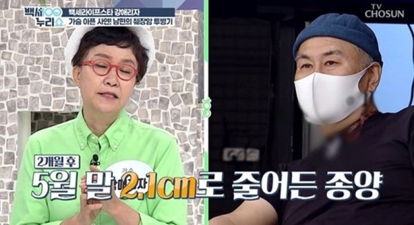 강애리자는 "3월 29일에는 종양 크기가 7.6㎝였는데 5월 말에는 2.1㎝로 줄어들었다. 최근에는 1.8㎝로 줄었다. 가장 중요한 건 종양표지자(암표지자)다. 발병 초기에는 그 수치가 높았는데 최근 검사 결과 정상 범위라는 소견을 받았다"고 희망적인 소식을 전했다.