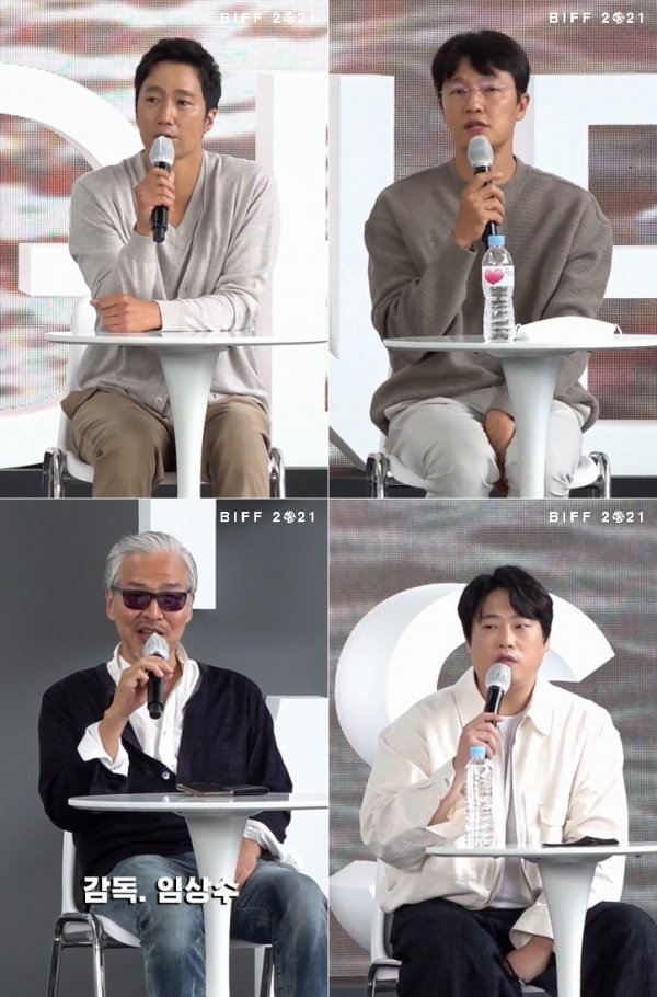8일 오후 1시 네이버 NOW를 통해 생중계된 제26회 부산국제영화제의 영화 ‘행복의 나라로’ 야외무대 인사. 이날 행사에는 임상수 감독과 배우 박해일, 조한철, 임성재가 참석해 관객들을 대면했다. 박해일은 “야외에서 여러분 만나서 정말 기쁘고 감동적”이라고 환하게 웃으며 인사했다.