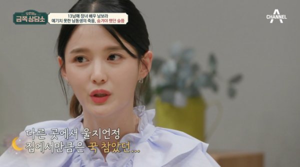 남보라는 29일 방송된 채널A ‘오은영의 금쪽 상담소’에서 인생의 가장 큰 위기로 남동생의 죽음을 언급했다. 그는 “동생을 먼저 보내야 하는 일이 있었다. 그런데 집에 가서는 울 수가 없었다. 부모님도 힘드실 텐데 단단하게 받쳐주는 사람이 있어야 한다는 생각으로 악착 같이 버텼다. 울어도 밖에서 울었다”고 고백했다.
