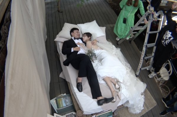 더욱이 이상준과 은가은은 ‘웨딩 촬영의 꽃’이라는 ‘침대씬’ 촬영으로 현장에 당도초과 달달함을 퍼트렸다. 그러나 그동안 은가은에 대한 과한 애정을 아낌없이 드러냈던 이상준은 은가은과의 초밀착 스킨십이 시작되자 얼어붙어 긴장하는 모습으로 폭소를 안겼다. 급기야 점점 얼굴이 빨개지던 이상준이 촬영 도중 은가은에게 결혼식을 마구 재촉하는 장면이 포착되면서, 그 사연은 무엇일지, 예비 부부 ‘꼼꼬미 커플’의 활활 타오른 ‘웨딩 촬영 현장’에 이목이 집중되고 있다.