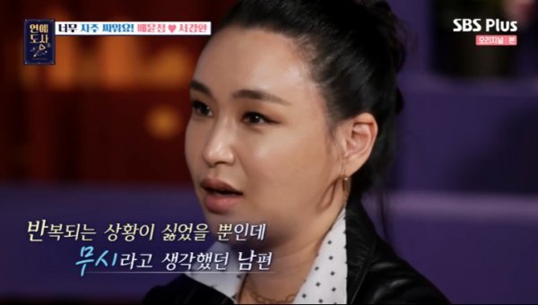 배윤정은 “남편과 말싸움을 하면 내가 진다. 남편이 하나하나 분석하고 꼬치꼬치 쏘아붙이니까 싸울 때 피하게 되더라. 나까지 똑같이 하면 못 만나게 될 것 같아서”라며 “참다가 혼자 서럽고 눈물 나고 그랬다”고 토로했다.