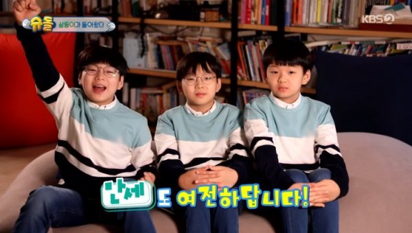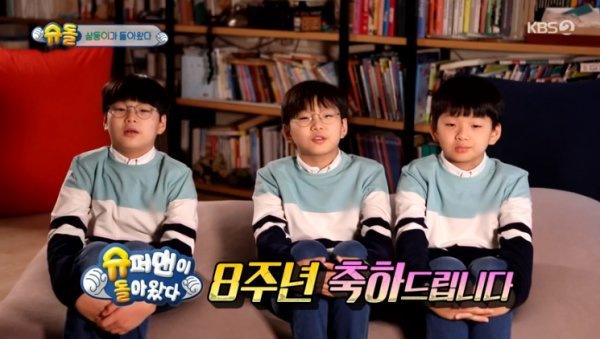 14일 방송된 KBS2 ‘슈퍼맨이 돌아왔다’에서는 프로그램 8주년을 맞아 송일국네 삼둥이 대한 민국 만세의 인사 영상이 공개됐다.