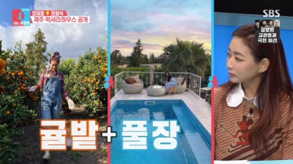 15일 밤 방송된 SBS ‘동상이몽2-너는 내 운명’에 스페셜 MC로 출연한 진재영. 2010년 4살 연하의 남편과 결혼한 그는 현재 제주에서 거주 중이라고. 진재영의 제주 집은 귤밭, 풀장, 넓은 마당 등을 자랑해 보는 이들의 감탄을 자아냈다.